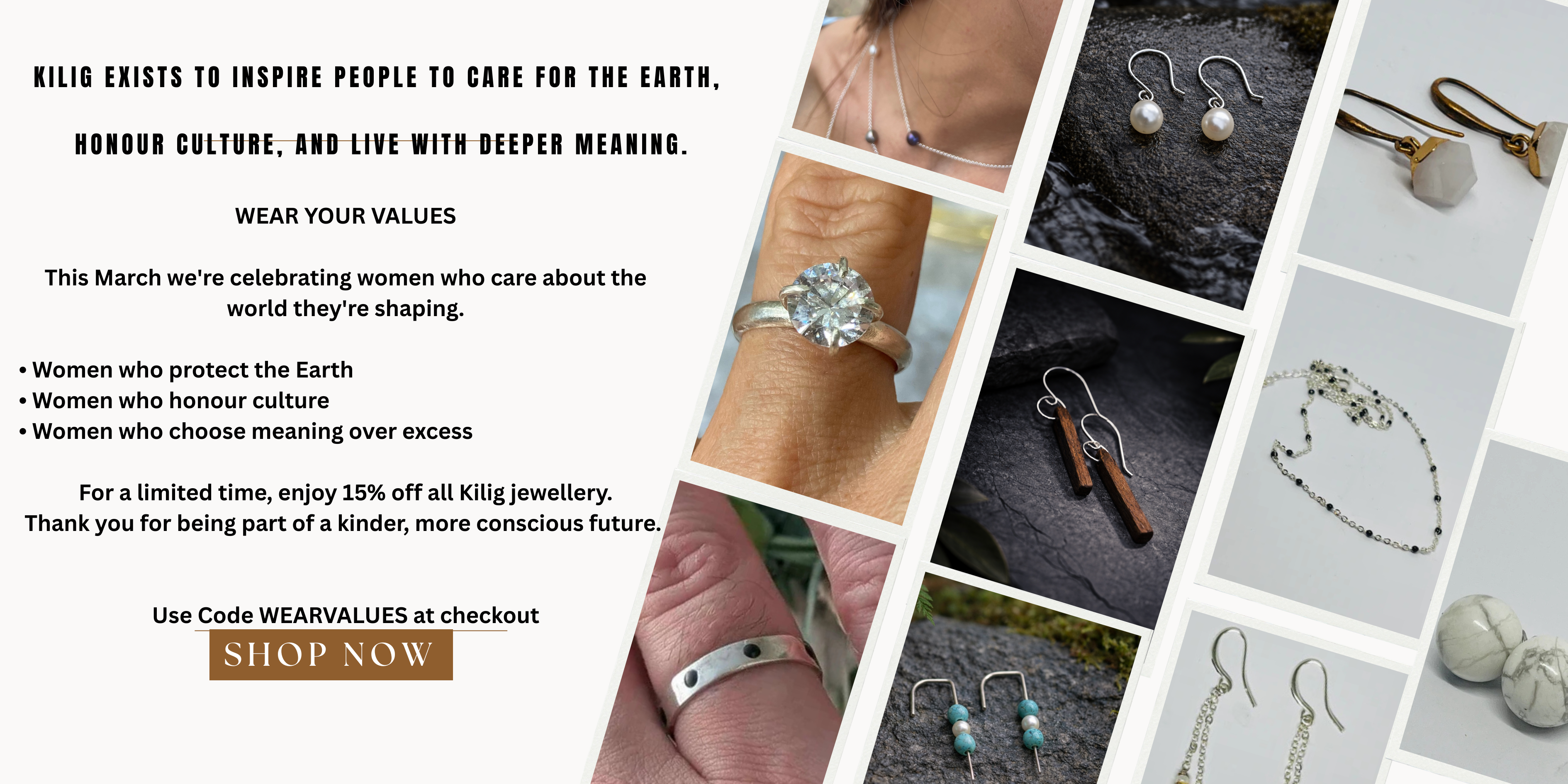 At Kilig Designs, we create minimalistic fine jewelry and boho-inspired wearables that connect you to nature and culture. Every piece is designed with purpose, crafted from ethical materials and inspired by the beauty of the Earth. Our mission is to blend simplicity, sustainability, and self-expression, offering jewelry and fashion that tell a story of care, kindness, and connection.