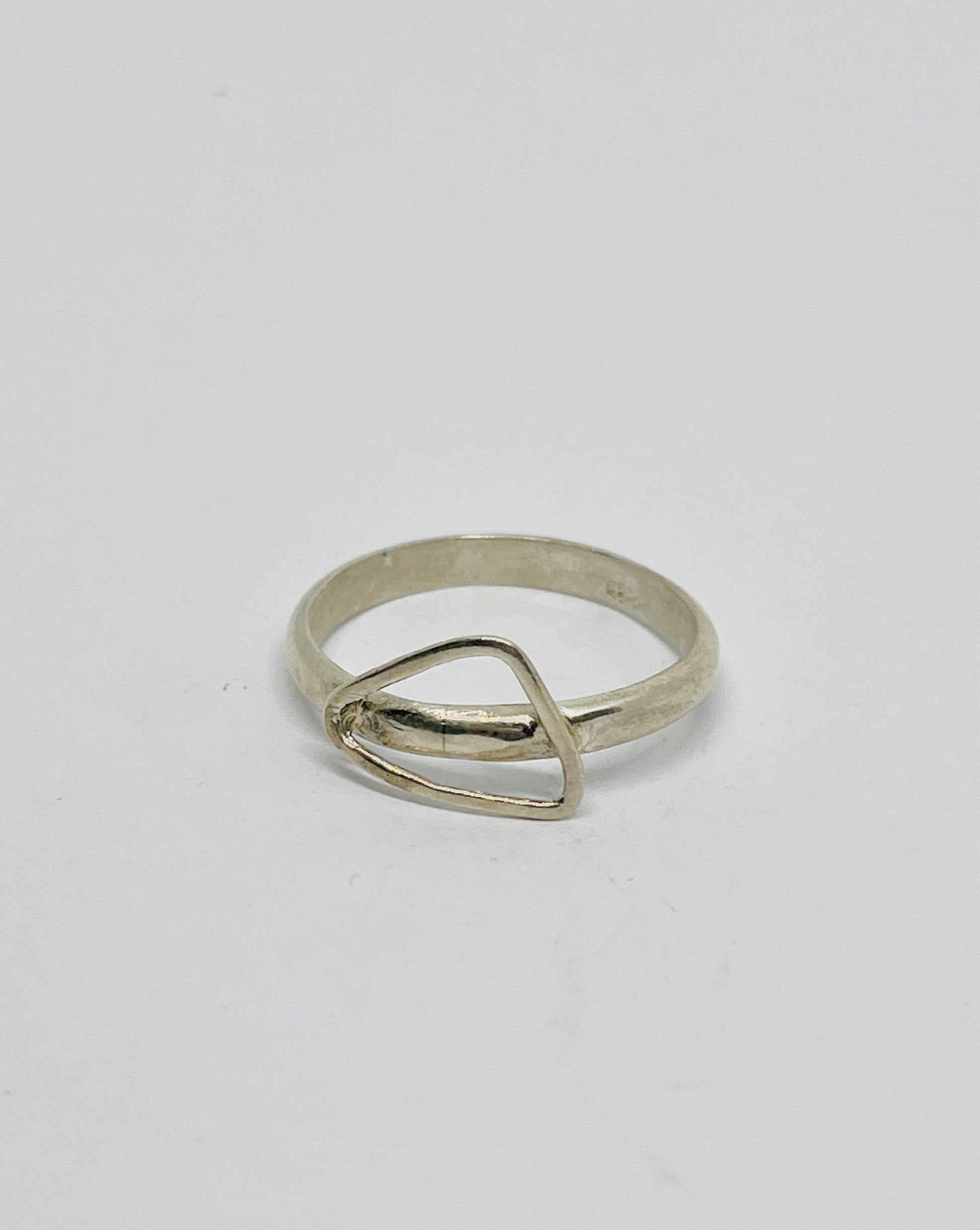 Embrace the elegance of nature with this exquisite silver ring adorned with a hollow triangle, a symbol of harmony and balance. Crafted with love and intention, the triangular design reflects the sacred geometry found in the natural world, evoking the tranquil essence of mountain peaks and sprawling valleys. This ring whispers the secrets of the earth, inviting you to connect with its energy and beauty. Its polished silver surface dances with light, reminiscent of sunlit glades and serene streams. Wear this piece as a reminder of your bond with Mother Nature, a celebration of the journey of growth, strength, and timeless beauty that resides within us all.
