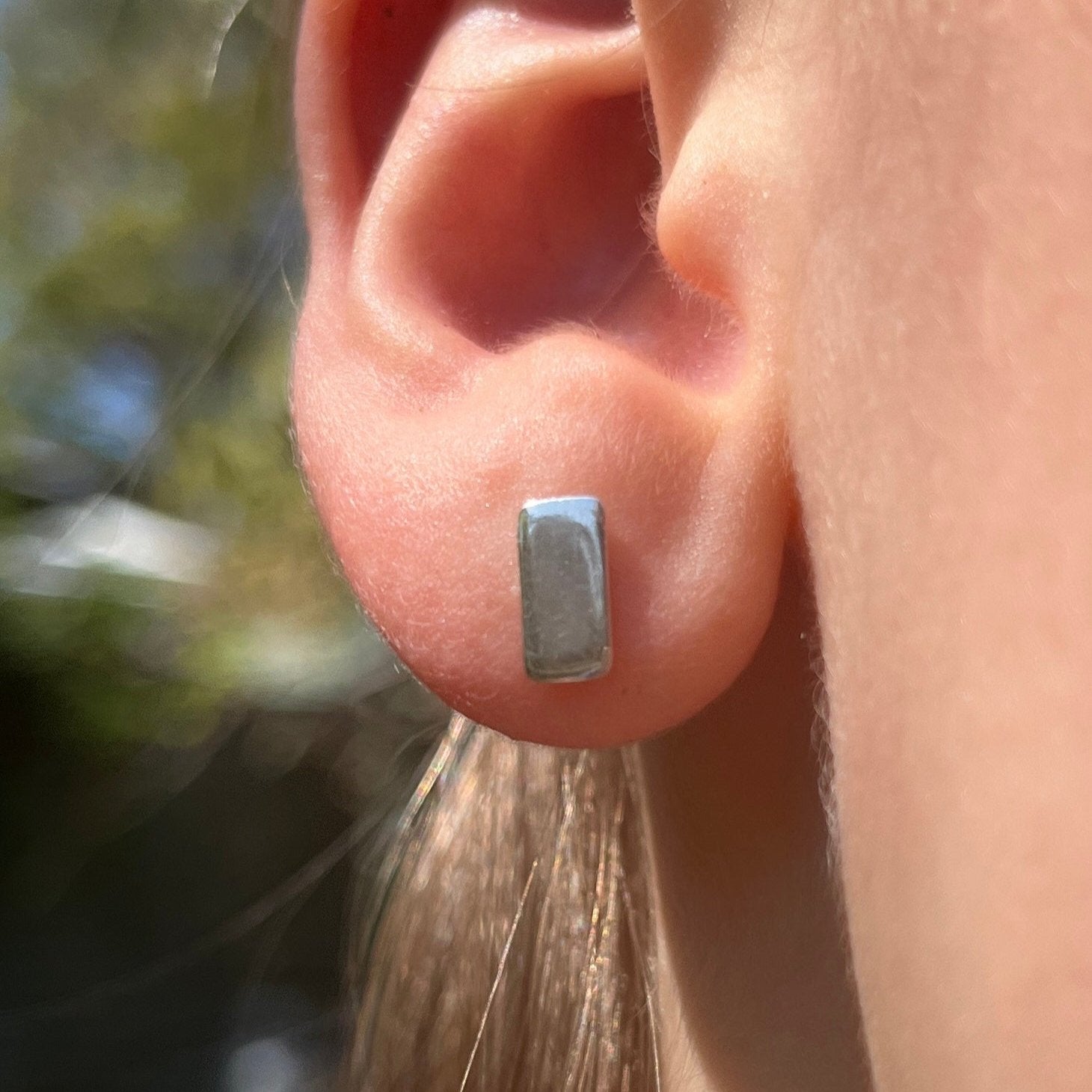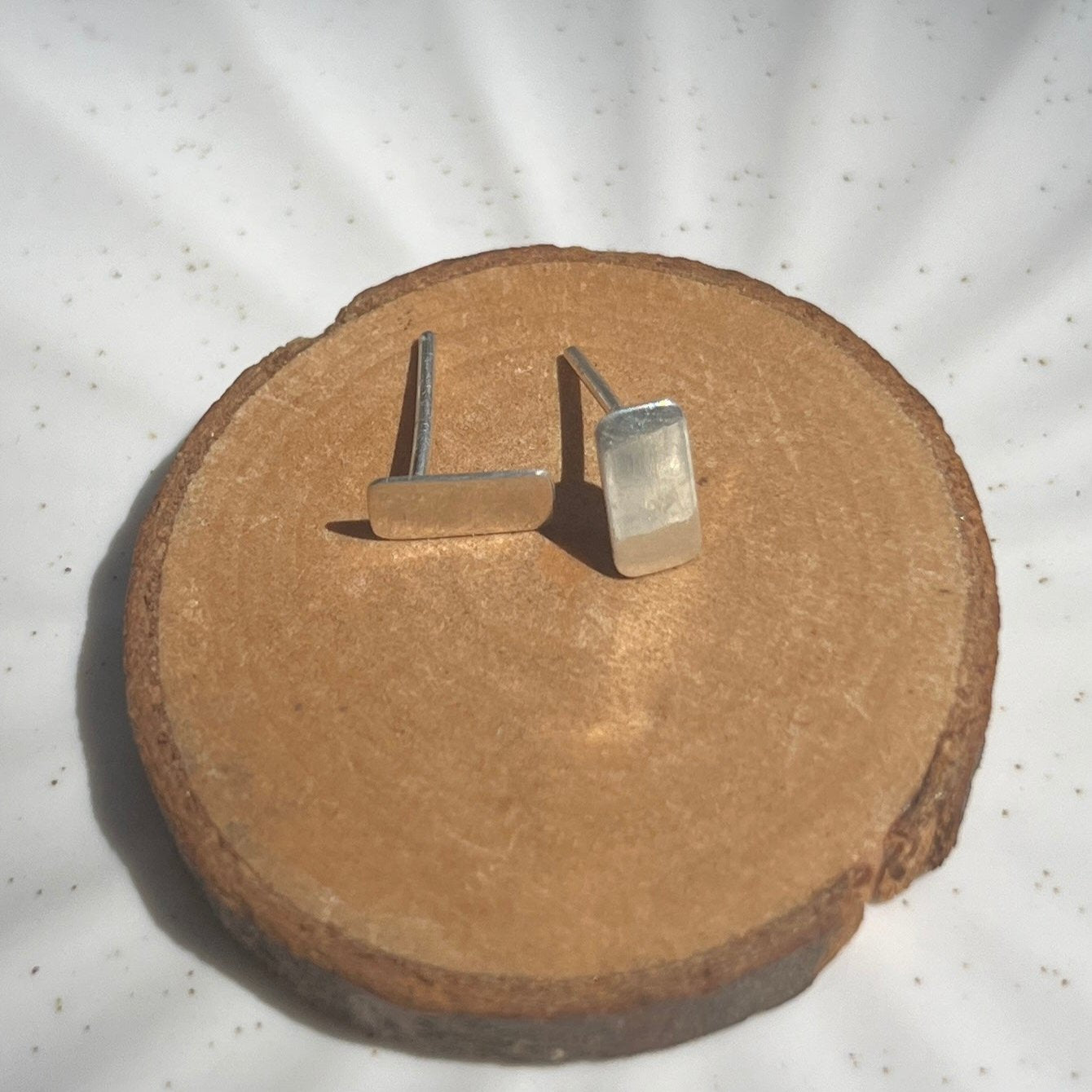 Pillars of Strength: Silver Rectangle Stud Earrings